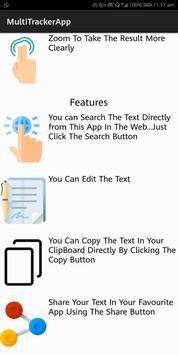 1..Detect Text From Any Thing.... 2..Copy The Text In your Clipboard...And Paste It AnyWhere 3..Share Your Text In Your Favourite App 4..Search In The Web Your Text For More Information