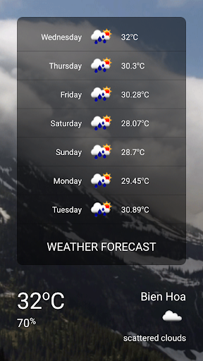 နောက်လာမည့် 7 ရက်အတွင်းသင်၏တည်နေရာတွင်ရာသီဥတုခန့်မှန်းချက်ကိုကျွန်ုပ်တို့တွေ့နိုင်သည်။အသုံးပြုရန်လွယ်ကူသည်။ဒီဟာကမင်းလိုလူတစ်ယောက်ကိုကူညီလိမ့်မယ်လို့မျှော်လင့်ပါတယ်