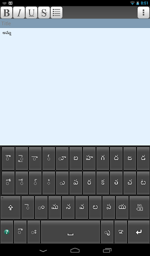 Telugu Keyboard is an intelligent dynamic keypad that offers you to type easy and fast in Telugu (తెలుగు) on your phone.