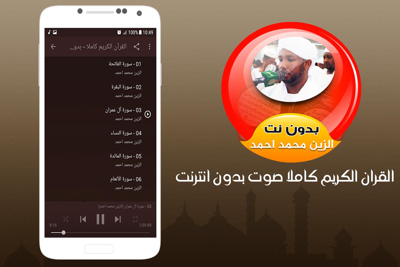 الزين محمد احمد القران الكريم كاملا صوت بدون انترنت
