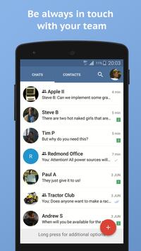 Actor seamlessly syncs across all of your devices and can be used on desktops, tablets and phones alike. You can send an unlimited amount of messages, documents of any type (.doc, .zip, .pdf, etc.), voice memos, images and videos. Actor groups doesn't have any limits.