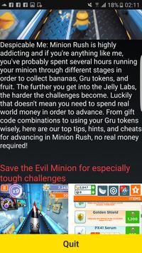 Disclaimer: This is an unoffical guide app, not a game, made by fans of Minion Rush series. It follows the US laws of fair use and all graphics belong to the copyright owners.