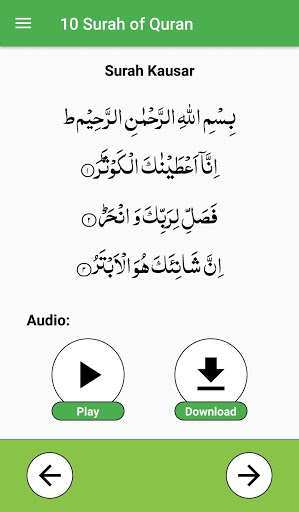 • Last 10 Surah met audio van hart trillende recitatie voor premiumgebruikers.