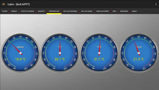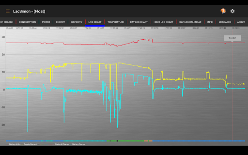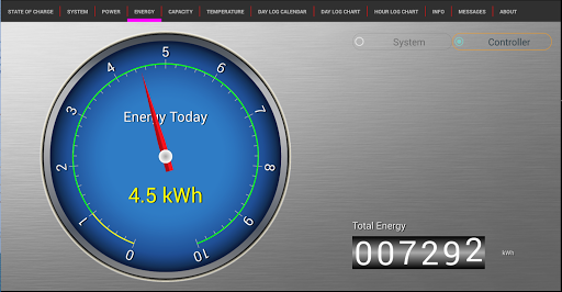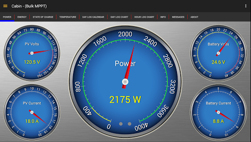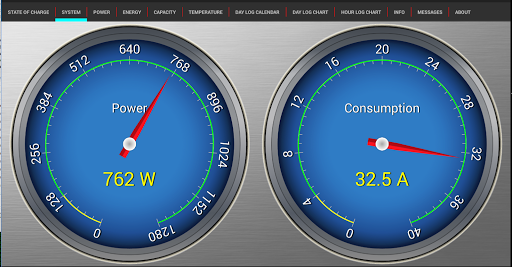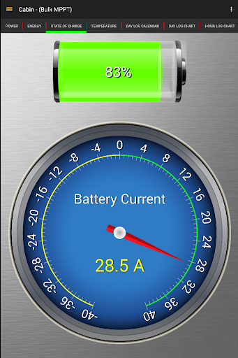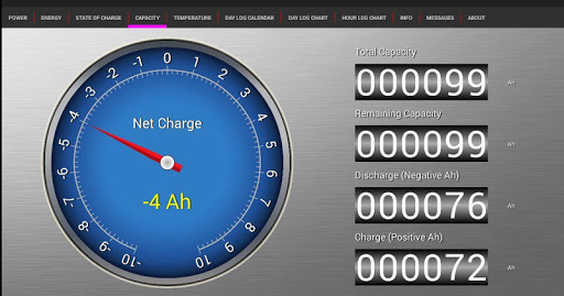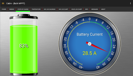 If the app detects a Whizbang Junior current monitor, the State Of Charge will display along with a bi-directional current gauge.