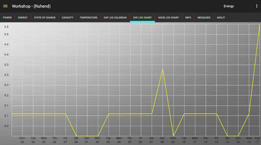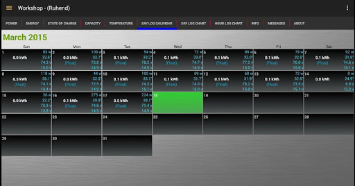 Other features include a calendar view of the daily power readings and a chart view of power for the last 24 hours, plus a store and forward feature to upload data to PVOutput.org.