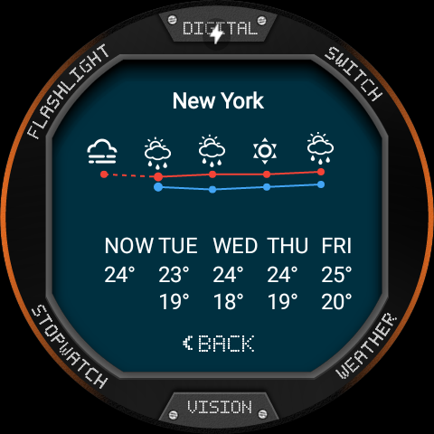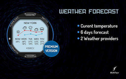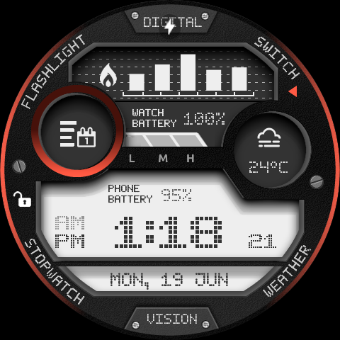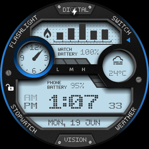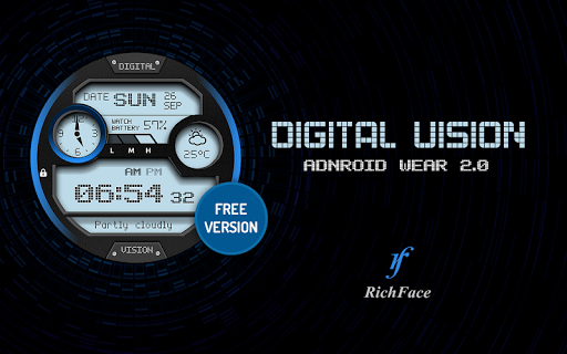 Digital Vision watch face for Android Wear is digital watch face with interactive functions and invert color setting.