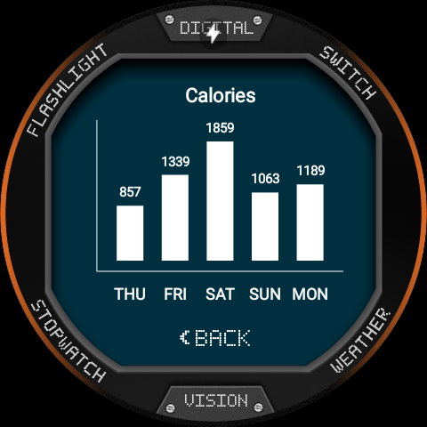 The watch face contains tap targets on the screen and you can customize them to be more informative which includes various number of data such as battery level status, FIT data, weather information, etc..