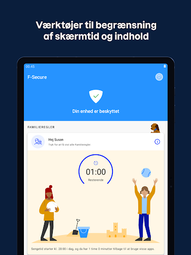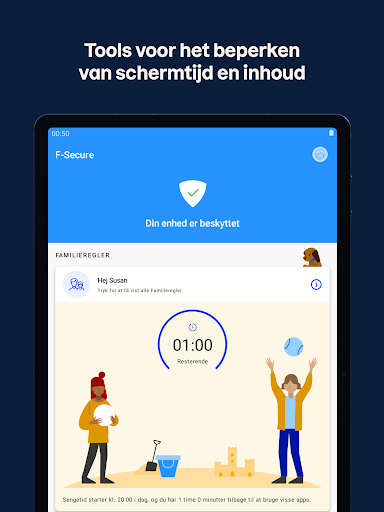 Apparaatbeheerdersrechten zijn vereist voor het uitvoeren van de toepassing en F-Secure gebruikt de respectievelijke machtigingen volledig in overeenstemming met het Google Play-beleid en met actieve toestemming van de eindgebruiker. De toestemmingen voor Apparaatbeheerder worden gebruikt voor de functies Ouderlijk toezicht, met name: