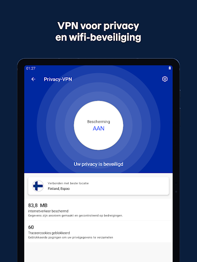 Download apps en bestanden veilig naar uw apparaat met een antivirus die malware, virussen, ransomware, Trojaanse paarden voor bankieren en spyware blokkeert. De hoogwaardige antivirusbescherming staat altijd aan en gaat altijd met u mee. Deze wordt stil op de achtergrond uitgevoerd en houdt u altijd veilig.