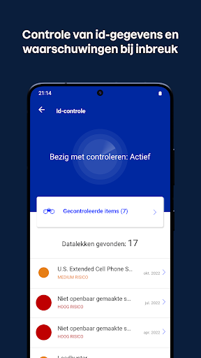 Voorkom identiteitsdiefstal met 24/7 bewaking van het dark web en met meldingen van gegevensinbreuken. Hoe komt u erachter dat een gegevensinbreuk de persoonlijke gegevens in uw online accounts bedreigt? F-Secure Identity Protection waarschuwt u als dat gebeurt. Dankzij de realtime meldingen hebt u de tijd om uw gegevens te beveiligen en identiteitsdiefstal te voorkomen.