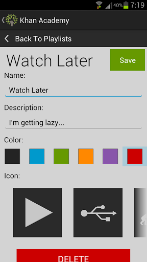 Browse and watch videos from Khan Academy: www.khanacademy.org - the best collection of educational videos covering almost everything (math, physics, chemistry and more).Make browsing Khan Academy videos easy on your mobile device, even while offline.Features:• Dashboard - Dynamically displays new information and recent activities.• Playlists* - Stay organized with different playlists. Customize them to your liking.• download * - Keep track of all your downloaded videos in a neat list. You can sort them however you want.• History - Shows recently seen videos with a nice time stamp.• Customizability - You are in total control.• Downloadable Content - Need to watch something offline or simply want to save your data? Simply download it!• Updates - No need to update the app for new content. New videos are silently added in the background as they're added.• Tablet Optimized - Every corner of the UI is designed to take advantage of the extra screen space.• Intuitive UX - Everything just feels and looks great. The user interface is clean and gestures are everywhere.* Playlists and organized Downloads are only available in the pro version.https://play.google.com/store/apps/details?id=com.pk.khanacademy.pro** This is an unofficial Khan Academy client app. All Khan Academy content is available for free at www.khanacademy.org. I am not charging for this content nor taking credit for it.The paid functions of this app are only to allow easier and more organized viewing.Permissions:• STORAGE - Needed to store videos for offline use.• NETWORK COMMUNICATION - Needed to fetch new data and download videos.