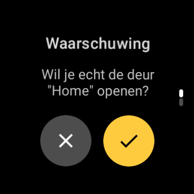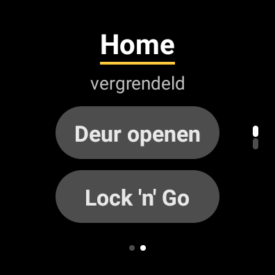 • De mogelijkheden voor het bedienen van het apparaat zijn met het horloge dezelfde als wat je ziet op de Nuki smartphone-app wanneer je even op het desbetreffende apparaat tikt.