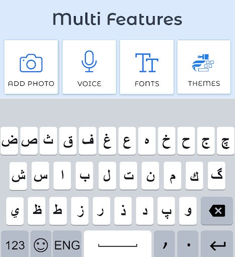 Typen in de Perzische myboard-app is veel eenvoudiger dan voorheen, typ de Perzische poëzie, je kunt gemakkelijk in het Farsi of farce typen met vloeiende toetsen met volledige Perzische woorden, typervaring van de gebruiker is verbeterd. Met Engels Farsi-toetsenbord online kun je typen op elk social-mediaplatform, kun je berichten typen, tweeten, statussen bijwerken, e-mails opstellen etc.