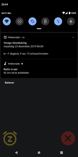 -een melding in de notificatiebalk geeft aan dat de radio aan staat en een tikje leidt terug naar het "wake-up"-scherm