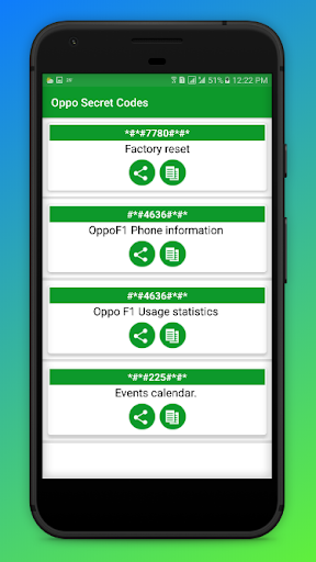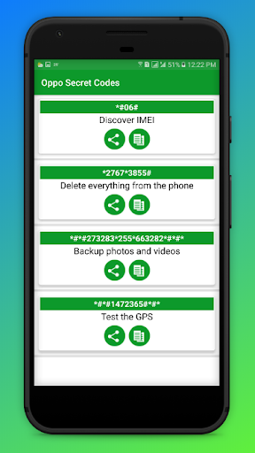 Nu kunt u de geheime wereld van uw Android Base Mobile-apparaten ontdekken. Sommige code van hen werkt mogelijk niet op specifieke apparaten, maar u kunt ze nog steeds proberen omdat hun fabrikant ze niet toestaat. Wanneer die codes handmatig worden getypt van de telefoonkiezer of kunt u deze code kopiëren met lang druk op de code en plakken deze op het klembord. Er is ook functionaliteit in de geheime codes van de oppo om het te delen met sociale apps vrij en offline.