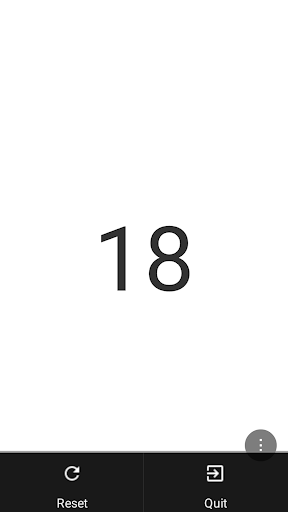 Dit is een echt Simple Counter-app - raak een deel van het scherm aan om de teller te verhogen.Druk op het menu-pictogram in de rechterbenedenhoek om de teller opnieuw in te stellen of te stoppen met de app.