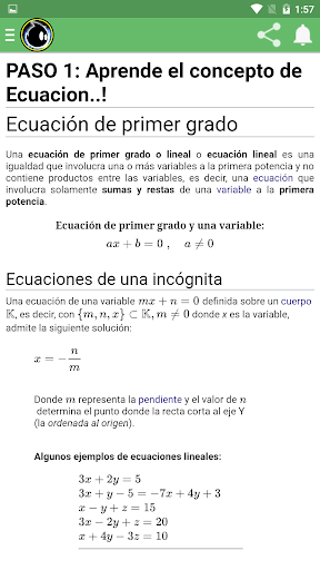 Deze applicatie zal u helpen bij het verbeteren van het wiskundige gebied, waar we u leren hoe ze lineaire vergelijkingen moeten uitvoeren (eerste klas).