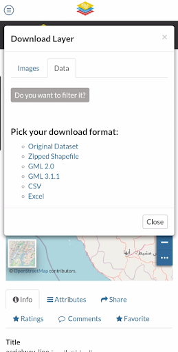 ESRI Shapefile و ESRI Geodatabase و Mapinfo TAB و GeoJSON و PBF و OSM (XML) و SQL (PostgreSQL) و CSV و PDF