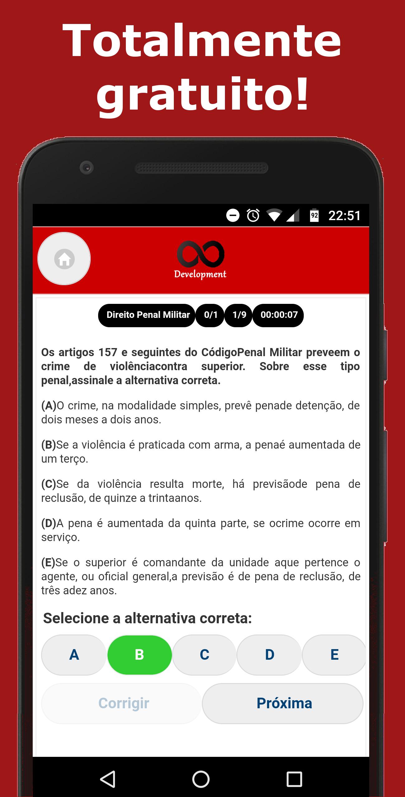 Estude direito, português, conhecimentos gerais, informática e várias outras matérias cobradas nos concursos da Polícia Militar. Aqui você encontrará simulados para carreiras de oficial do exército, cadete do exército, juiz, soldado, entre outros.
