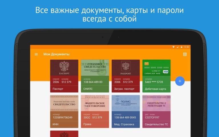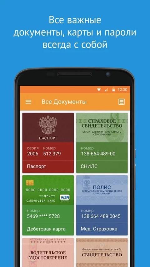 VKarmane will conveniently and securely store personal documents - passports, credit cards, certificates and insurance documents for cars and others. Now in an updated style Material Design specifically for Google Play ❤︎