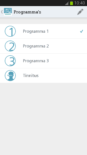 De App is alleen voorzien van de functies zoals geconfigureerd door uw hoortoestelspecialist. touchControl-app is compatibel met de meest recente generatie Signia/Siemens hoortoestellen, 7px, 5px, 3px, 7bx, 5bx, 3bx, Orion 2, Sirion 2. Een volledige lijst met geschikte hoortoestellen kan worden gevonden door op de weblink onderaan deze pagina te klikken.