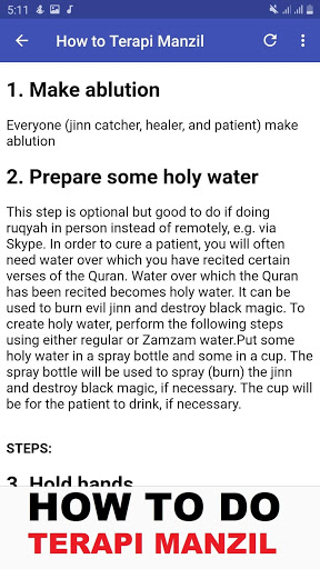 2. Detailed explanation on how to do terapi manzil ruqyah to an afflicted person