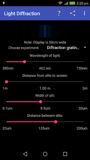- Distance between slits (Diffraction grating and double slit experiments only)