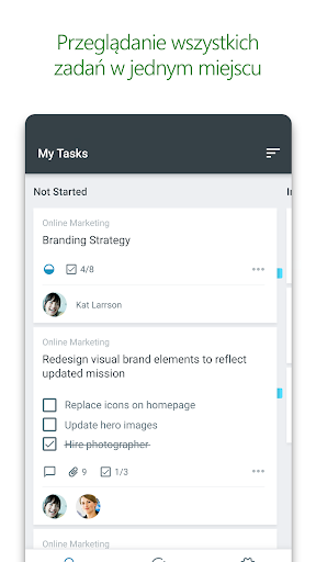 W widoku Moje zadania znajduje się pełna lista wszystkich zadań oraz ich stan we wszystkich Twoich planach. Podczas wspólnej pracy nad planem członkowie zespołu zawsze wiedzą, kto nad czym pracuje.
