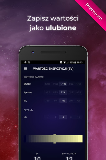 Uwaga: Aby uczynić tę aplikację dostępną za darmo, zawiera ona reklamy. Wszystkie funkcje Premium mogą być odblokowane poprzez zakup Inappa lub zainstalowane jako samodzielna aplikacja "ND Filter Expert Pro".