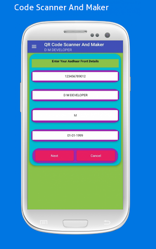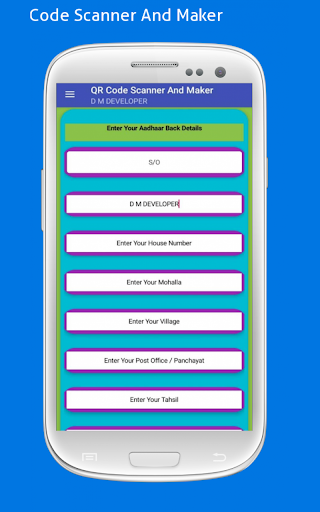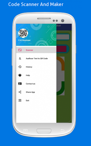 1. High quality QR Code Scanner 2. High quality QR Code Maker 3. Aadhaar Text To Aadhaar QR Code Maker Use Sim Activation and Other Work 3. QR Code text save to history 4. Help and Contact us option