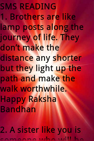 This app contains:- 1.Raksh Bhandhan wallpapers 2.Rakhi Sms 3.Songs and Ringtons of Rakhi special. 4.Wallpaper set on screen.