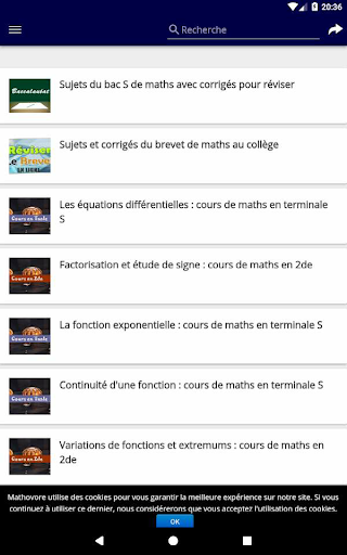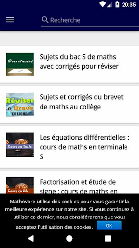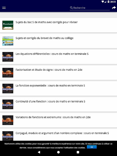 Wszystkie kursy dla studentów i szkoły średniej, ale także ponad 1500 skorygowanych ćwiczeń z szóstego do terminalu.Przedmioty patentu i baccalaureate of mathematics są również online z Mathovore.