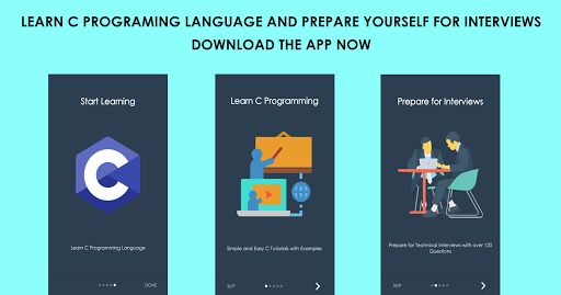 Najlepsza aplikacja Tutorial C Programming Programming dla użytkowników, którzy szukają programów IQ, Quiz i Basic C. Pobierz i poznaj różne podstawowe podstawy języka C.