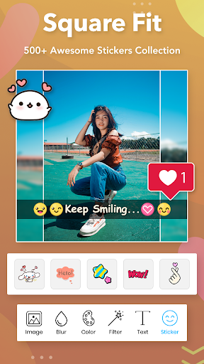 Kwadratowy Fit Collage Maker jest niesamowity Snap Photo & Insta Pic Naklejki Photo Edytor zdjęć , Możesz dodać tekst Snap z Emojis i innymi naklejkami.