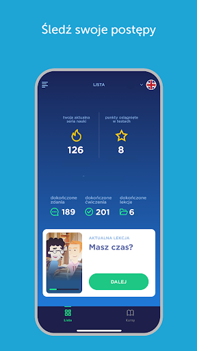 Dzięki Mooveez możesz śledzić swoje postępy i zobaczyć, ile zdań, ćwiczeń i lekcji masz już za sobą. Na końcu każdej lekcji jest test, gdzie możesz sprawdzić, czego się nauczyłeś i uzyskać punkty, którymi są oceniane twoje wyniki. Będzie cię to motywować do kontynuowania nauki języka.