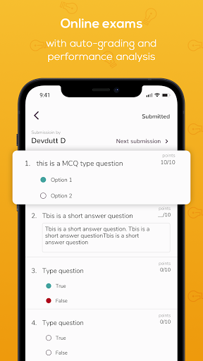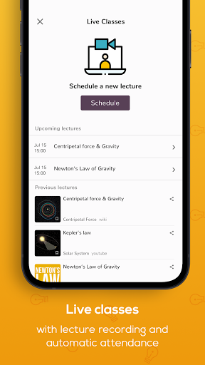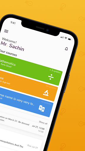 Uczeń dostaje dostęp do kursów, w których jest zapisany.On / ona może uzyskać dostęp do treści przedmiotów / kursów w intuicyjnym formacie osi czasu i może zadać wątpliwości / zapytania z odpowiednich nauczycieli nawet po klasie.