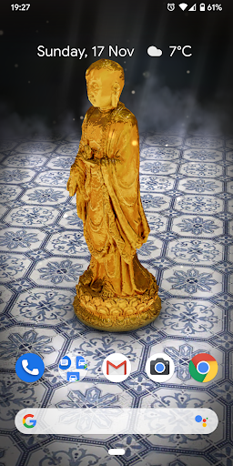 Este papel de parede ao vivo coloca um símbolo de meditação, serenidade, proteção e prosperidade ao seu dispositivo - uma estátua de Buda.