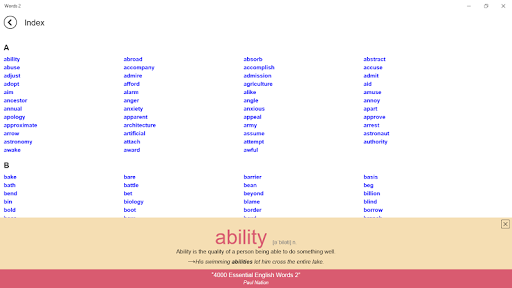 As atividades em "4000 palavras essenciais em inglês" são especialmente projetadas para fazer uso de importantes condições de aprendizagem. Em primeiro lugar, as palavras são introduzidas usando definições de frases e uma sentença de exemplo. As atividades que se seguem nas unidades incentivam os alunos a lembrar os significados e formas das palavras. Algumas atividades também fazem com que os alunos pensem sobre o significado das palavras no contexto de uma sentença - uma frase diferente das frases que ocorreram na introdução das palavras. Além disso, cada unidade termina com uma história contendo as palavras-alvo. Ao ler a história, os alunos têm que lembrar os significados das palavras e se adequarem ao contexto da história. Tais atividades ajudam os alunos a desenvolver uma melhor compreensão de um significado comum para uma determinada palavra que se adapta aos diferentes usos.