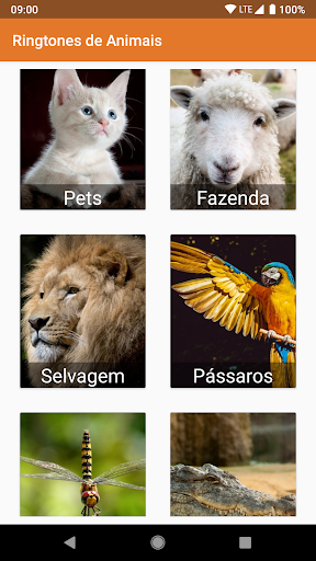 -Ringtones gratis de animais separados por categoria: animais domésticos (cachorros, gatos,etc), sons de fazenda (como galinhas), animais selvagens, mamíferos, etc.