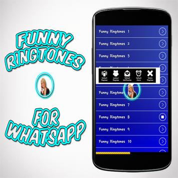* Funny Ringtones para WhatsApp para alterar o som de notificação para WhatsApp, as categorias de tons são: toques engraçados, bebês engraçados sons, notificações de risos, sombras de medo, chamada, Android, musical. Ringtones engraçado para WhatsApp ringtones design elegante e moderno vai fazer o som do telefone a ser legal, não hesite em mudar o toque, com este aplicativo Funny Ringtones para WhatsApp e curtos sons altos pode desfrutar da melhor compilação de toques engraçado.