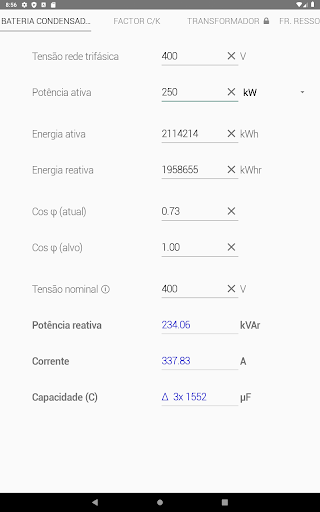 · Cálculo dos parâmetros de eletricidade de uma fase monofásica ou trifásica (balanceada)