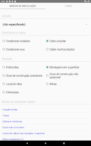 · Escolha do sistema de instalação em função do circuito, cabo e sua situação