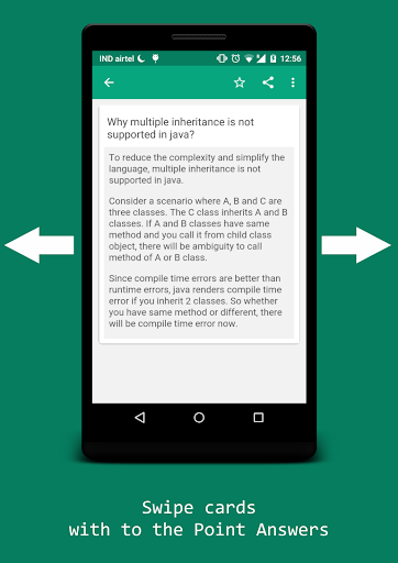 This Application contains java tutorial and many core Java interview questions with answers which are frequently asked by the recruiters. It covers broad range of topics in Java. Even interviewer can use this application to get ideas about the questions. Be sure to go through all the questions before interview. Swipe the cards left or right to move to next or previous topic within the category.