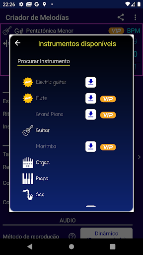 Mudar o instrumento para ouvir a melodia no piano, violão ou saxofone e outros instrumentos que estão sendo atualizados permanentemente