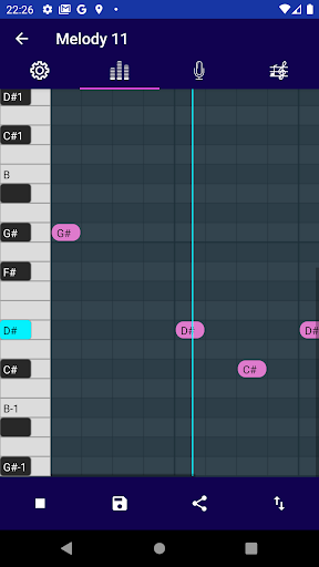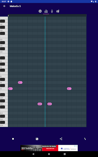 Visualizar as notas e a partitura de qualquer melodia que você criar ilimitadamente, para incluí-la facilmente em suas músicas ou composições.
