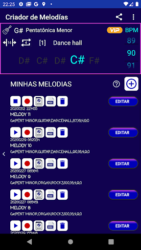 O Criador de Melodias gerencia uma versão VIP e uma versão gratuita, quando você compra a versão VIP você pode: