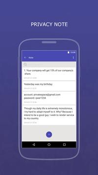 7.Private space is perfect combination of the app lock, fast encryption and hidden photos/video/documents/notes.