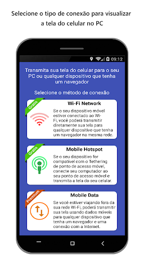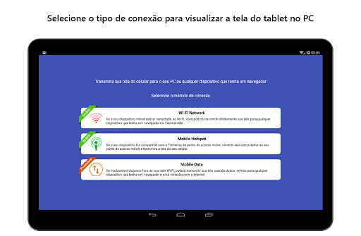 • Escolha 'Wi-Fi', 'Ponto de acesso móvel' ou 'Dados móveis' para conectar-se ao seu PC.