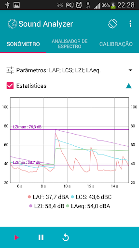 Aviso: esta aplicação não pretende ser uma alternativa a um sonómetro aprovado. Sua precisão depende estritamente das especificações do microfone/amplificador que não são concebidos em um smartphone para medir níveis de pressão sonora. Use esta aplicação unicamente para obter valores indicativos e para fins pedagógicos. Por favor, use um sonómetro aprovado nos casos apropriados.