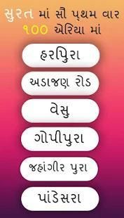 "AdajanAlthan","Ambanagar","Amroli","Anand Mahal Road","Athwa","Athwa Gate","Athwalines","Bamroligam","Bardoli","Begampura","Bhatar","Bhestan","Bhimrad","Canal Road","Chowk Bazar","City Light","Dabholi","Dahin Nagar","Dindoli","Dumas","Ghod Dod Road","Godadara","Gopipura","Gothan","Haripura","Hazira","Hazira - Adajan Road","Ichchhapor","Jahangir Pura","Jahangirabad","Kadodara","Kadodara Nagar","Kamrej","Kapodra","Karamala","Katargam","Kharwar Nagar","Khodiyar Nagar","Kim","Kosamba","Kumbharia Gam","Laskana","Limbayat","Limla","Magob","Mahadev Nagar","Mahindra Pur","Mahuva","Majura Gate","Mandvi","Maroli","Masma","Mora Bhagal","Mota","Mota Varachha","Mughal Sarai","Nana Varachha","Nanavat","Nanpura","Narotam Nagar","Narthan","Navagam","Navsari Road","New City Light","New City Light Road","Olpad","Pal Gam","Palanpur Gam","Palanpur Jakatnaka","Palsana","Pandesara","Pankaj Nagar","Parvat Gam","Parvat Patiya","Pasodara","Patel Nagar","Piplod","Punagam","Rander","Rander Road","Rustampura","Sachin","Sagrampura","Salabatpura","Saniya Hemad","Saroli","Sayan","Shahpore","Shakti Nagar","Sima Nagar","Subhash Nagar","Surat Dumas Road","Tadwadi","Udhna","Umarwada","Uttran","Varachha","Vareli","Vesu","Vidhey Nagar","VIP Road","Vishal Nagar","Vishnu Nagar"